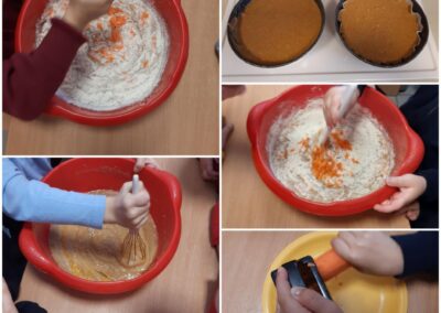 Τέλος, η εβδομάδα μας έκλεισε με μια γλυκιά «νότα». Φτιάξαμε το δικό μας κέικ καρότου ή αλλιώς «καροτοκέικ», όπως το ονόμασαν τα παιδιά! Μυρίσαμε, γευτήκαμε, απολαύσαμε! Μια συνταγή που μας άρεσε πολύ και που σίγουρα θα ξαναφτιάξουμε.