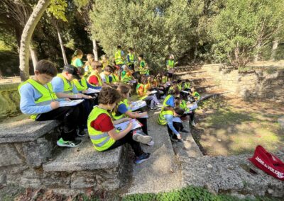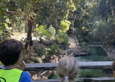Κατά τη διάρκεια της επίσκεψης τα παιδιά εξερεύνησαν ένα μοναδικό τοπίο, όπου το νερό προσδίδει ξεχωριστή ομορφιά. Η πλούσια και εντυπωσιακή βλάστηση, τα τρεχούμενα νερά, τα ξύλινα γεφυράκια, τα μονοπάτια και οι χώροι ξεκούρασης εντυπωσίασαν τους μικρούς εξερευνητές. Αφουγκράστηκαν τους ήχους της φύσης και κατέγραψαν συναισθήματα και εντυπώσεις, αξιοποιώντας τις αισθήσεις τους. Επίσης, αναβίωσαν τα πολιτεύματα της Αρχαίας Ελλάδας, μέσα από βιωματικές δραστηριότητες που εστίασαν στη βασιλεία και τη δημοκρατία. Επιπλέον, εντόπισαν αρχαιολογικά σημεία, όπως τα αρχαία ταφικά μνημεία και τμήμα από το ρωμαϊκό σύστημα υδροδότησης της αρχαίας πόλης της Ρόδου, συνδέοντας την ιστορία με το φυσικό περιβάλλον. Τέλος, μεταμορφώθηκαν σε «Μυστικούς Πράκτορες του Οικοσυστήματος», παρατηρώντας με μεγεθυντικούς φακούς τους αφανείς οργανισμούς του πάρκου, τους οποίους κατέγραψαν, ζωγράφισαν και πρότειναν τρόπους προστασίας τους.