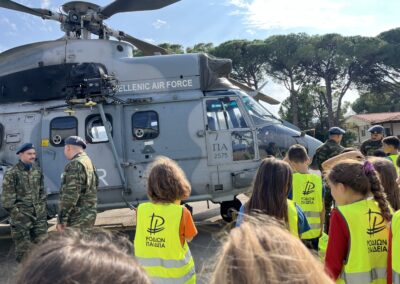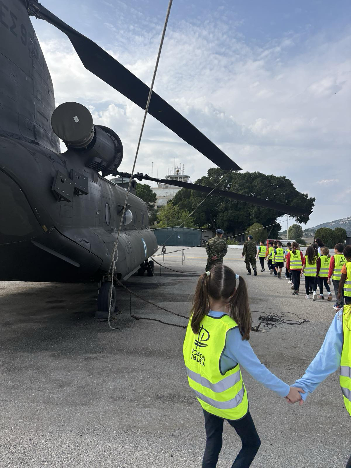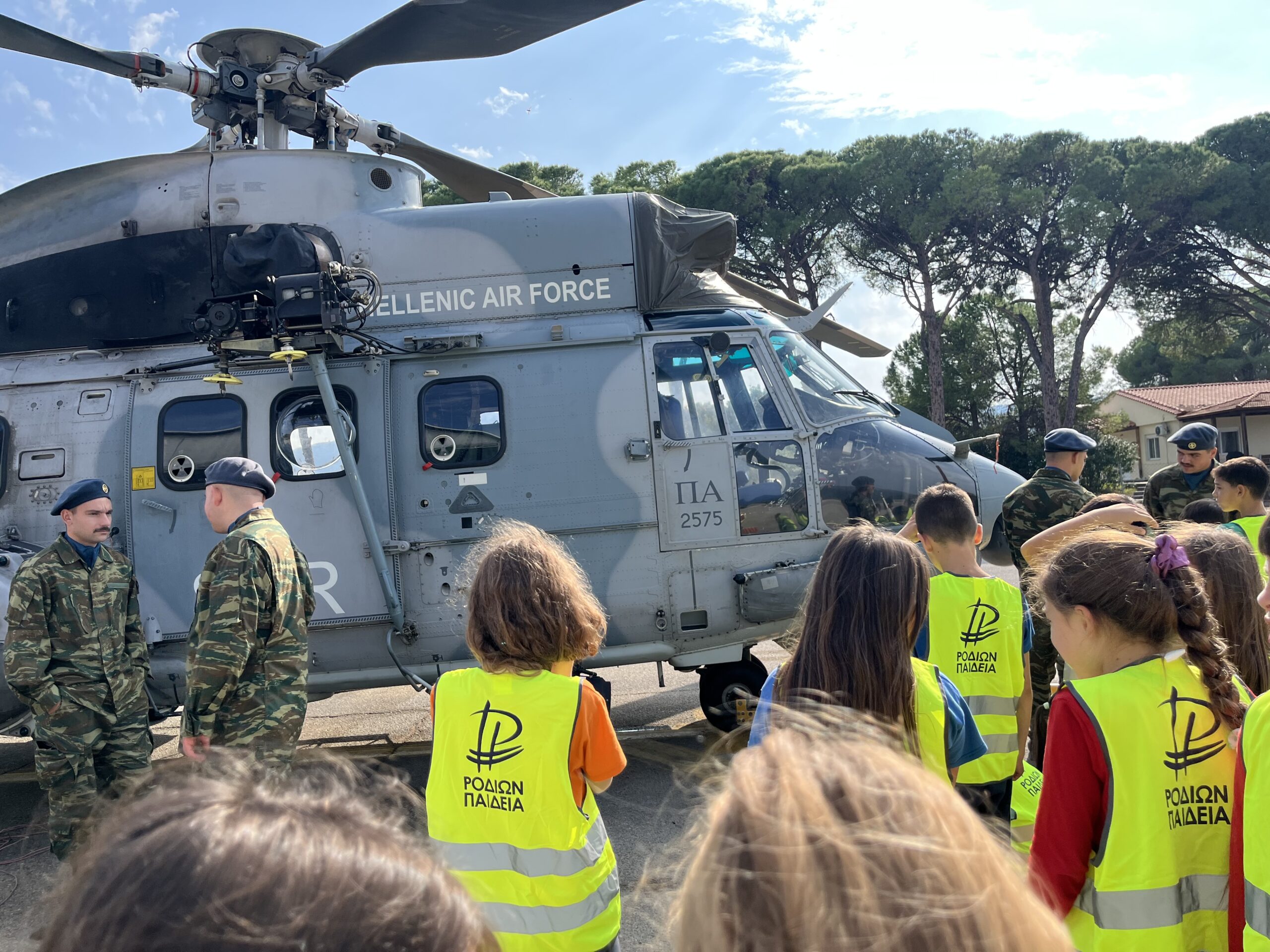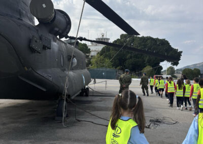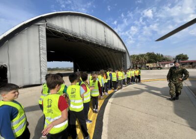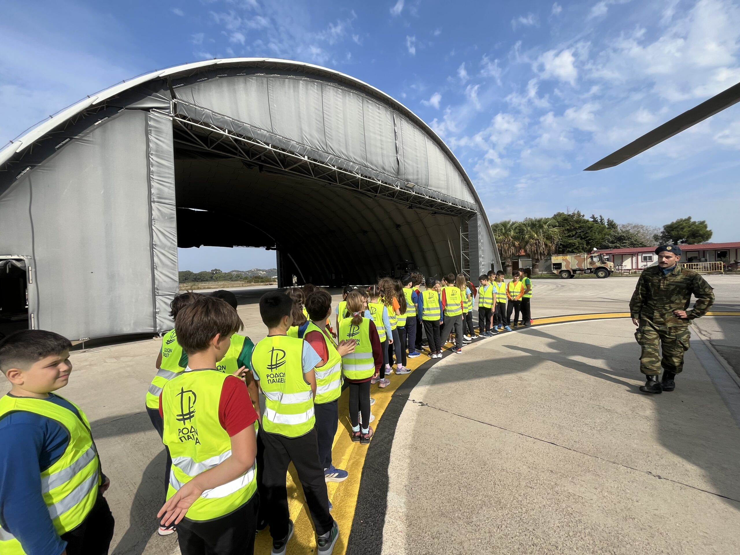Κατά τη διάρκεια της επίσκεψης, οι μαθητές είχαν την ευκαιρία να γνωρίσουν από κοντά τον ρόλο και την αποστολή της Πολεμικής Αεροπορίας. Ξεναγήθηκαν από εξειδικευμένο προσωπικό και παρατήρησαν το ελικόπτερο Super Puma, ένα όχημα γενικής χρήσης και παντός καιρού, που αξιοποιείται σε επιχειρήσεις έρευνας και διάσωσης, μεταφοράς και υποστήριξης.