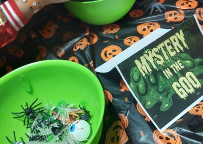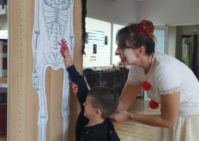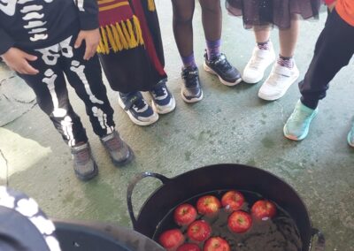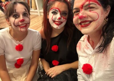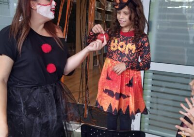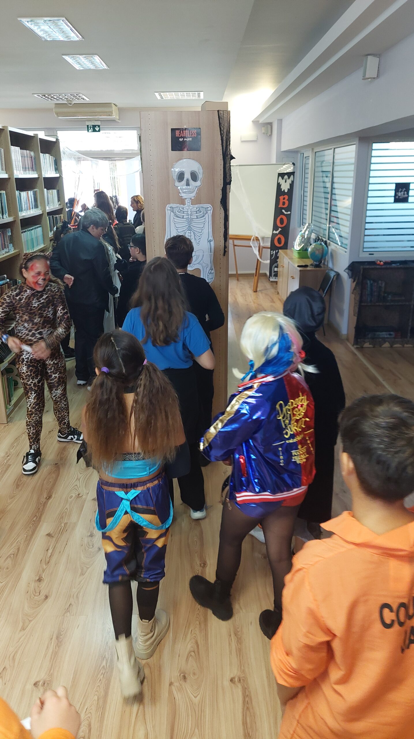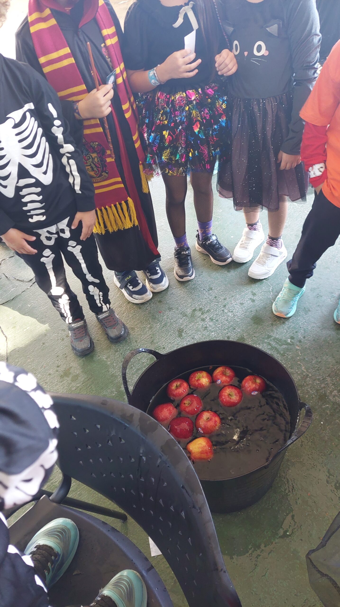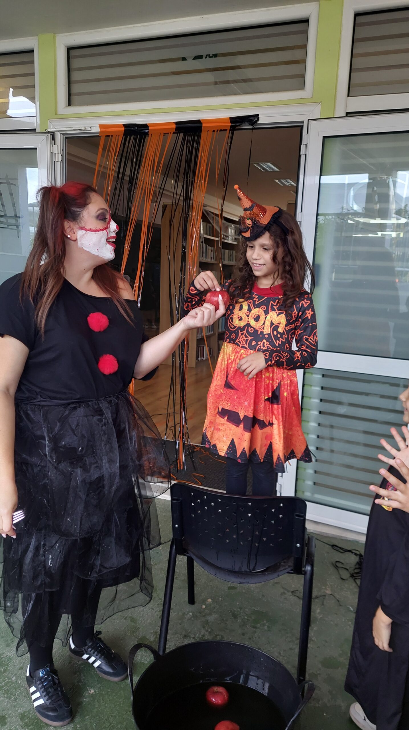 Overnight, Ms Effie Asvesta, Ms Zoe Filippidi and Ms Doria Panae – a trio of terrifying clowns – had transformed the school library into a spooky Halloween wonderland with clever challenges and scary trials! Who was brave enough to put their hand in the goo to find the mystery objects or courageous enough to put their hands inside Dracula’s Boxes of Doom? Trying to pin the heart on the skeleton was not nearly as easy as it looked when you had been spun around. The next station was the traditional Halloween game of dooking (or bobbing) for apples.