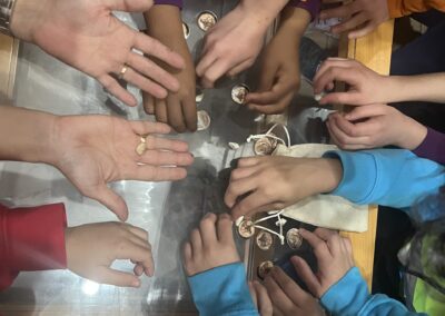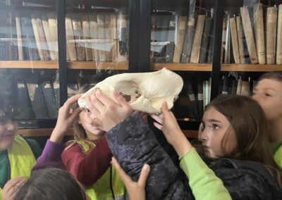 Τα παιδιά εξερεύνησαν την εσωτερική δομή μιας φώκιας, παρατηρώντας αληθινά δείγματα οστών και δοντιών. Η επιστημονική παρατήρηση και η άμεση επαφή με το υλικό τα βοήθησε να κατανοήσουν τη μορφολογία και τις ανάγκες του ζώου με τρόπο απλό, κατανοητό και ελκυστικό.