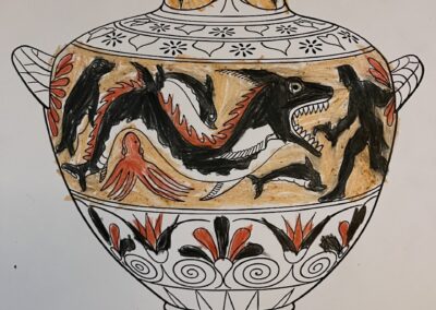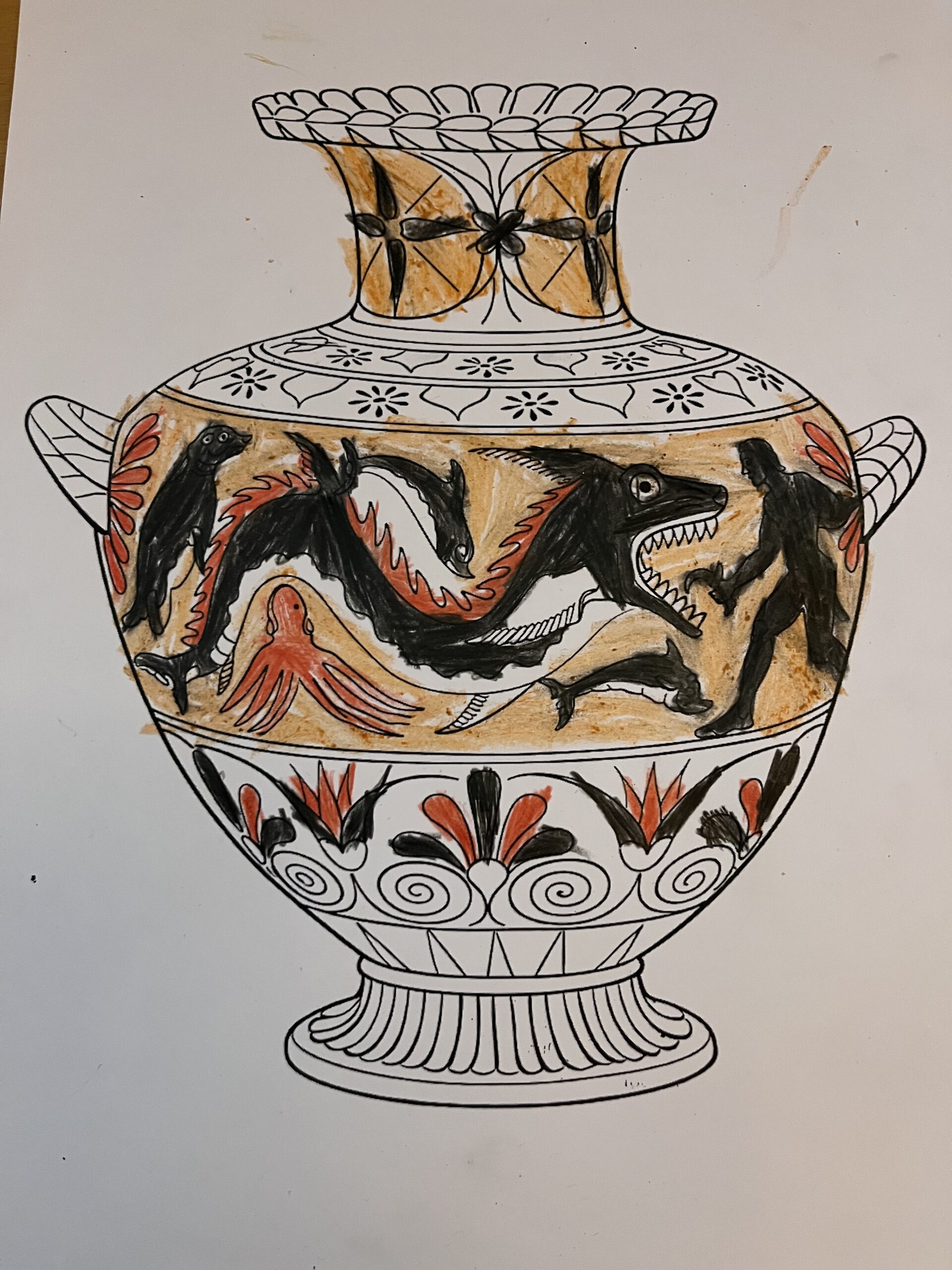 Κατόπιν, οι μαθητές γνώρισαν πώς οι άνθρωποι της αρχαιότητας αποτύπωναν τη θαλάσσια ζωή σε νομίσματα και αμφορείς, αποδεικνύοντας τη βαθιά σχέση του Αιγαίου με τις φώκιες και τη θαλάσσια πανίδα. Στη συνέχεια, έγιναν μικροί «αρχαιολόγοι», δημιουργώντας τους δικούς τους αμφορείς, εμπνευσμένους από όσα έμαθαν.
