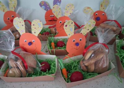 Ξεκινήσαμε με πασχαλινές ιστορίες, που μας έβαλαν στο πνεύμα των ημερών, παίξαμε πασχαλινά μαθηματικά παιχνίδια, ετοιμάσαμε τις πασχαλινές μας κατασκευές. Δεν έλειψαν φυσικά τα διασκεδαστικά «Αινίγματα», τα «Κινητικά παιχνίδια» και τα παιχνίδια με τις λέξεις. Δεν θα μπορούσαμε να μην πάρουμε μέρος και στο κυνήγι των πασχαλινών αυγών και, πιστέψτε μας, δεν μας ξέφυγε ούτε ένα!